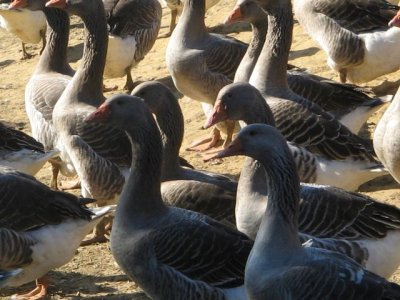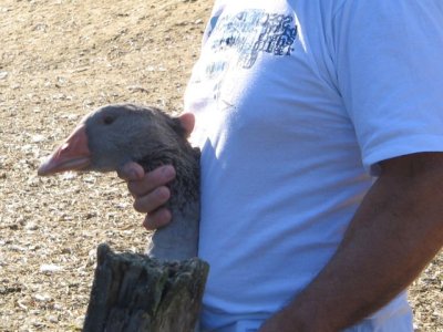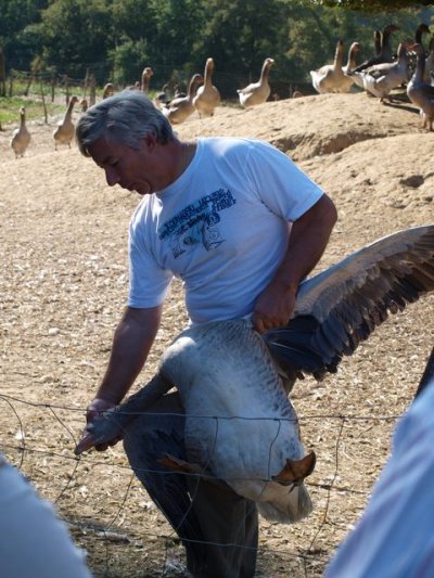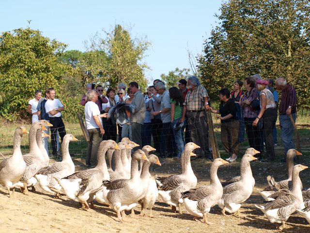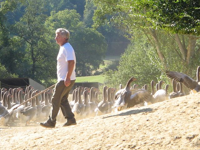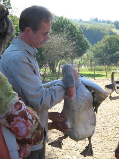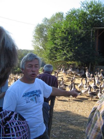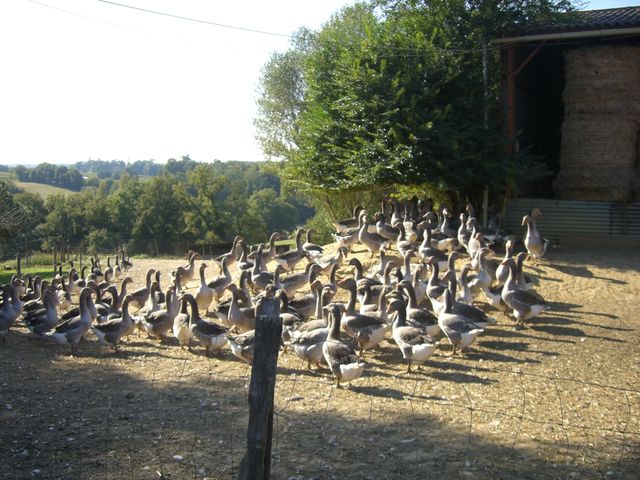 Sous un magnifique ciel bleu, nous avons roulé vers Lartigues où nous attendais un éleveur d’oies.