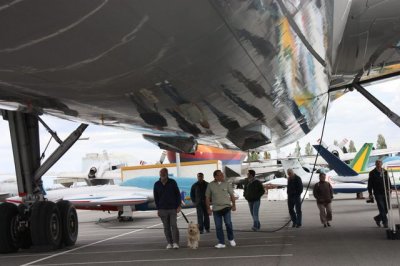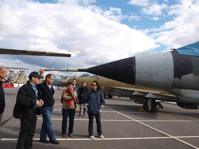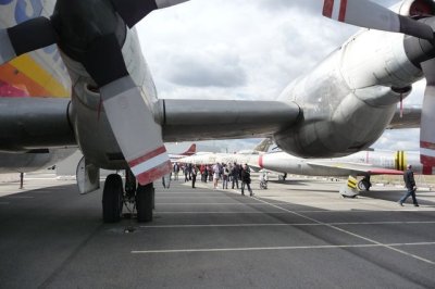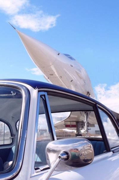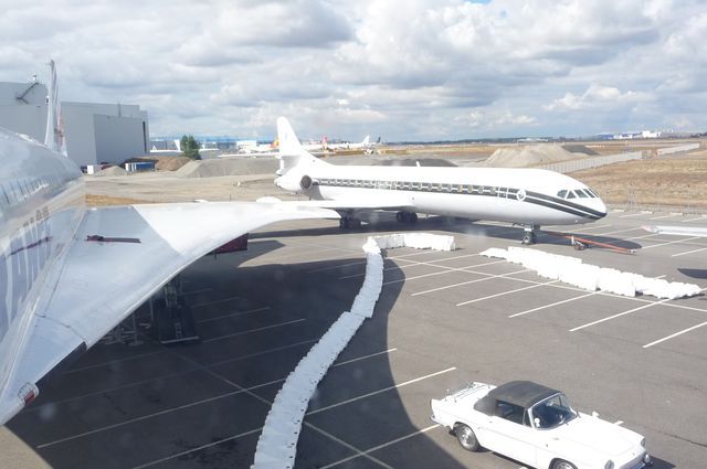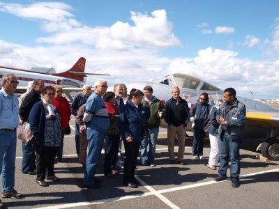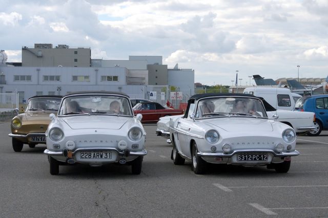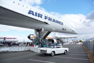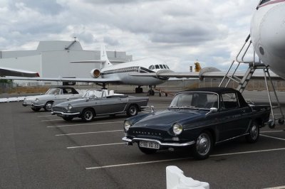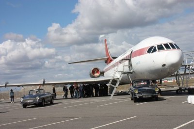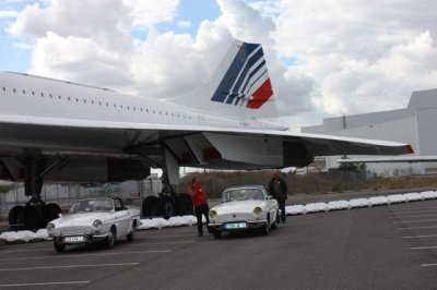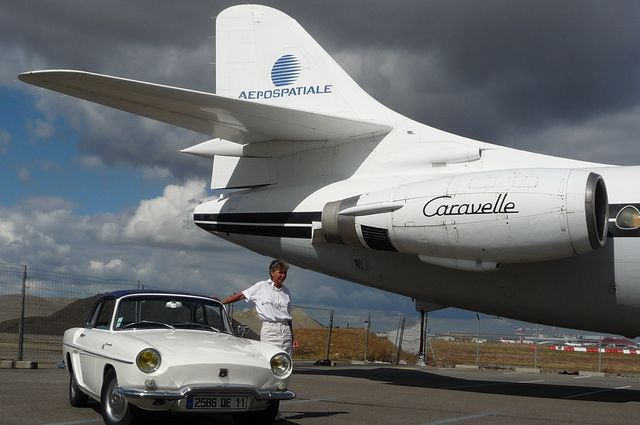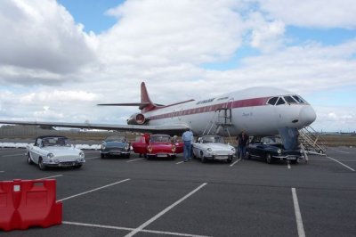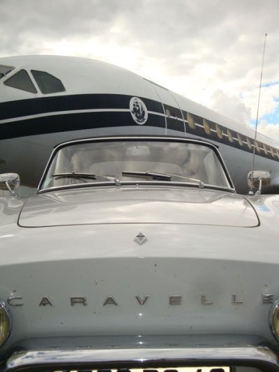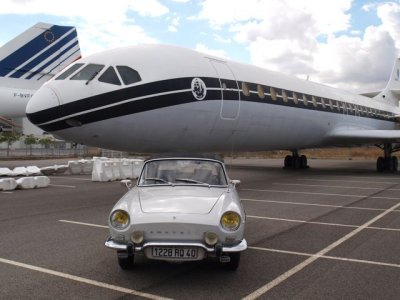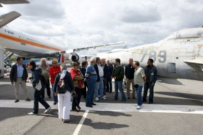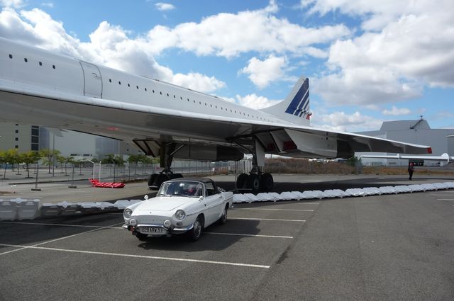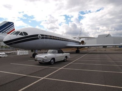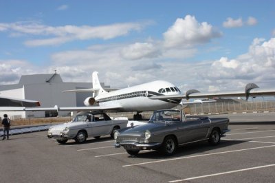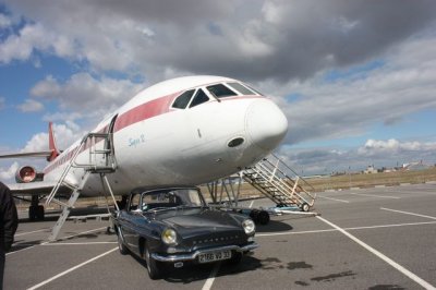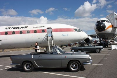 | C’est sous un ciel bleu mais une température toujours bien fraîche que nous partons vers Blagnac et le musée des Ailes Anciennes. Nous sommes attendus par de jeunes bénévoles qui vont nous faire découvrir leur collection d’avions anciens. Surprise ! Ils nous ouvrent les portes pour laisser entrer huit voitures qui vont se glisser près de deux Caravelles soigneusement préservées. Nous avons bien entendu dans la tête les publicités Renault de l’époque où l’auto et l’avion avaient posé côte à côte.