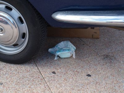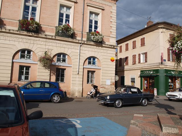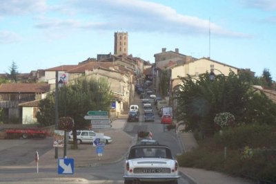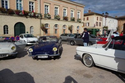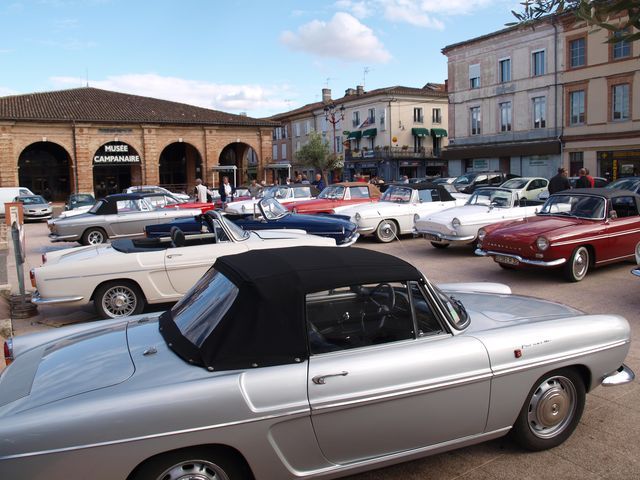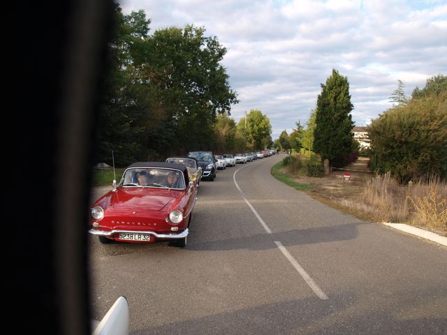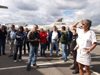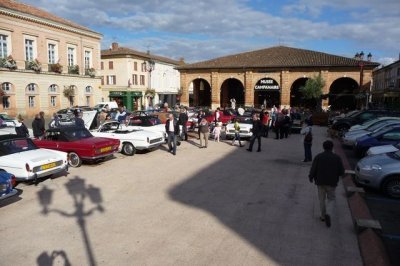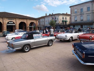 | Après une longue visite, richement commentée par nos guides et une belle séance photo autour des avions, nous reprenons la route vers l’Isle-Jourdain, où nous avons l’autorisation de stationner sur la place d’Armes. Y faire entrer en bon ordre 24 voitures n’est pas chose aisée... A retenir pour le futur. Tout le monde a prévu de quoi éponger les éventuelles fuites de nos autos. :-))
