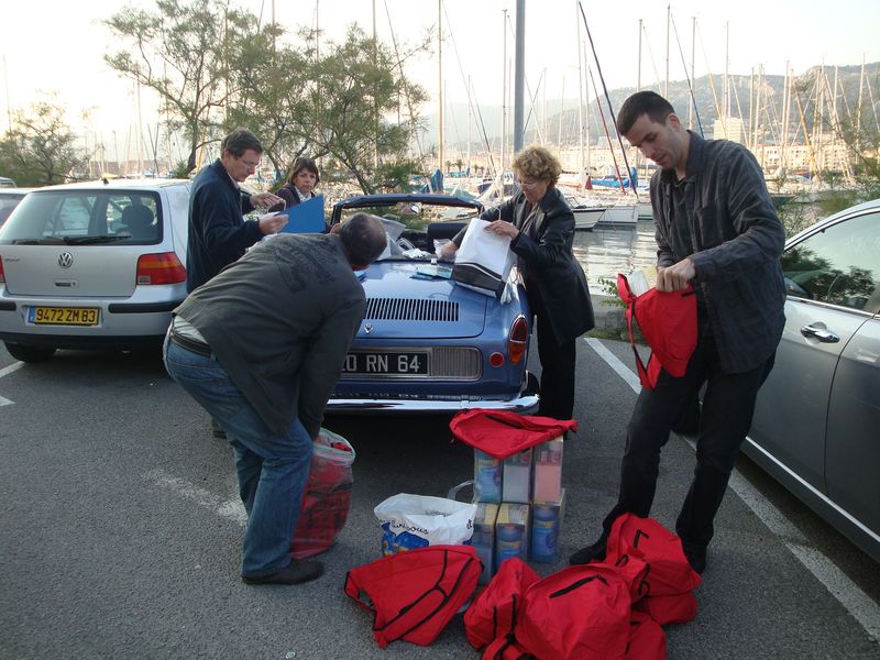 Samedi, les équipages doivent se regrouper sur le port de Toulon. Première aventure : avaler les kilomètres depuis Bordeaux, Libourne, Bayonne, Pau, Mont de Marsan, Caussade, Pépieux, Limoges, Auxerre, Orléans, Paris, La Mède (pour eux une petite promenade...)
