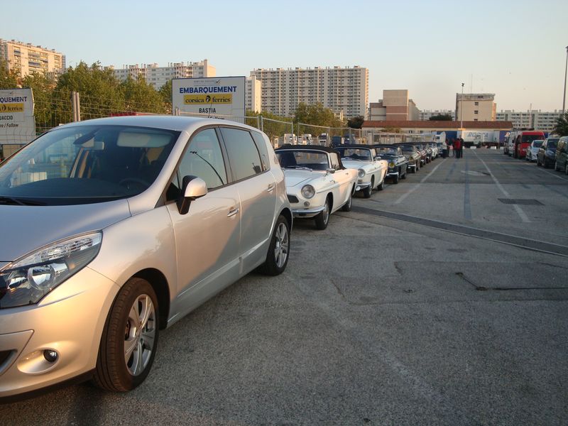 Le rendez-vous est fixé vers 20 heures dans la file d’attente de la Corsica Ferry. toutes les voitures arrivent après parfois quelques aventures...Un alternateur changé entre poire et fromage...