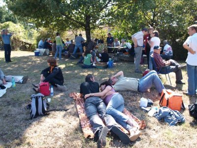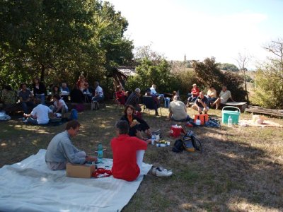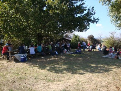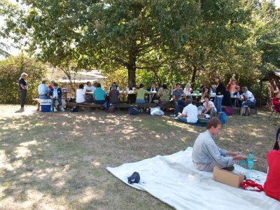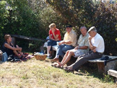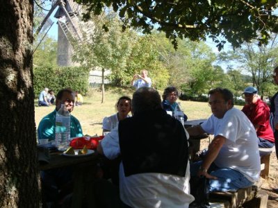 Après les efforts autour du moulin, tout le monde se retrouve autour du verre de l’amitié avant de s’installer pour le traditionnel pique-nique du samedi.