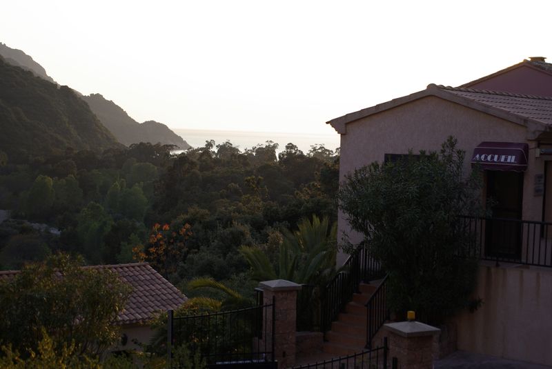 Petite bourgade, nichée au fond d’une jolie petite baie, adossée à la montagne et protégée par sa tour génoise, Porto nous accueille pour la nuit à l’hôtel Capo d’Horto.