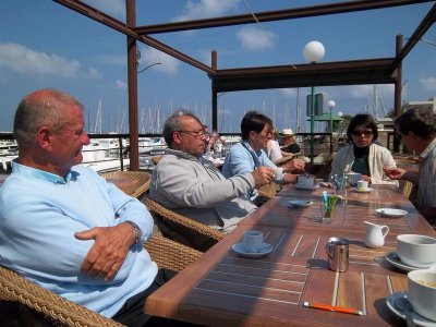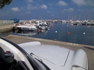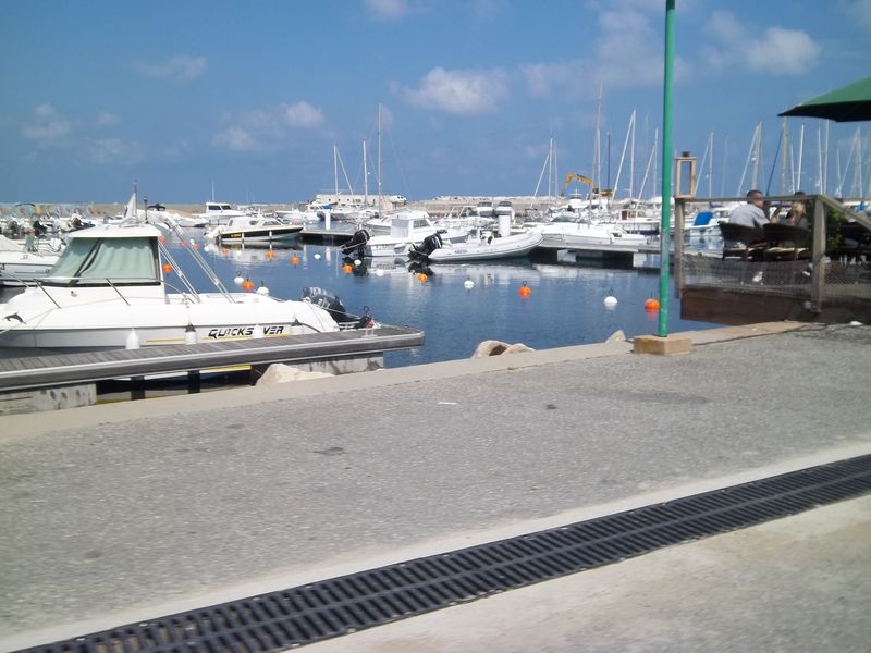 Pause-café sur le port de la petite station balnéaire Solenzara, à l’embouchure de la rivière du même nom, où nous profitons de la douce chaleur du bord de mer.