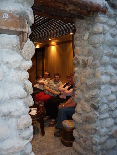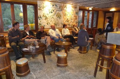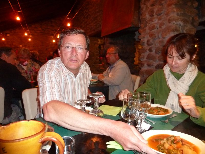 Notre hôtel, juste ouvert pour nous, (la saison commence à peine), magnifique dans son écrin de verdure, au bord d’un torrent, a juste l’inconvénient de n’avoir pas d’eau chaude...La bonne humeur résiste et le repas est joyeux !!!