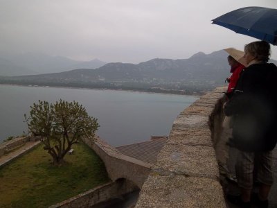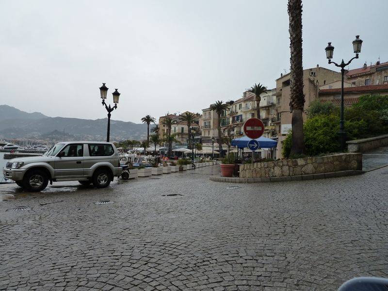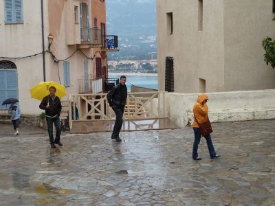 La pluie s’invite après notre départ de Sant’Antonino et c’est sous les parapluies que nous visitons CALVI.