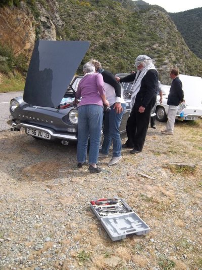 Sur le trajet une petite alerte mécanique, la Caravelle de Francis, dont une rotule de direction est desserrée est stoppée. Diagnostic rapide réparation aisée, il n’a rien perdu.