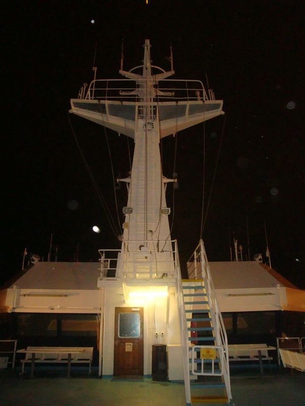 L’attente est longue sur le quai, il est presque minuit quand nous embarquons sur le SMERALDA, navire amiral de la flotte.