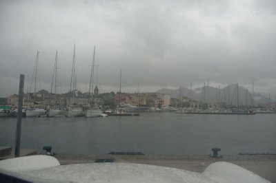 C’est sous un déluge de pluie que nous descendons vers Bastia où l’embarquement est prévu vers 21 heures.
