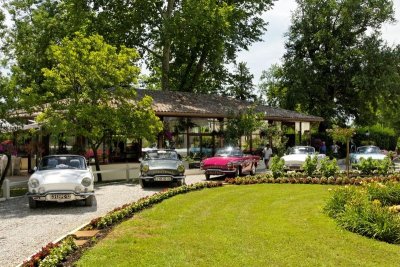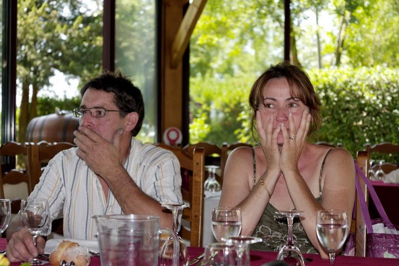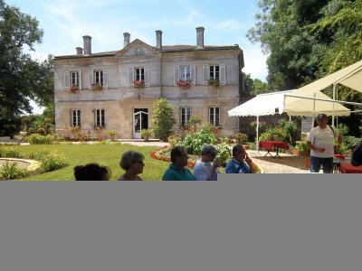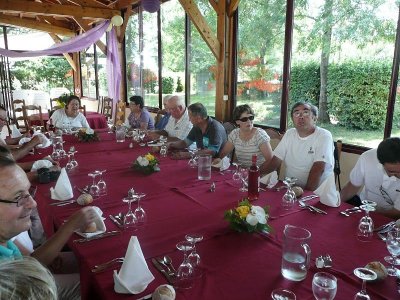 Le repas de midi au château Desplats en bord de Garonne, un peu chaud pour le confit...