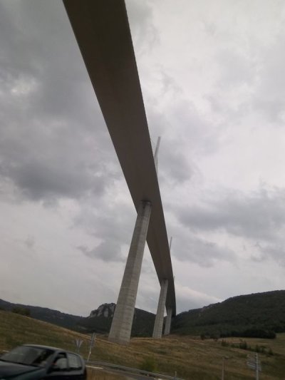 Nous reprenons lourdement la route vers Millau où le groupe se sépare sous le viaduc...