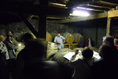 Arrêt chez un producteur qui nous fait visiter son chai et goûter sa production.