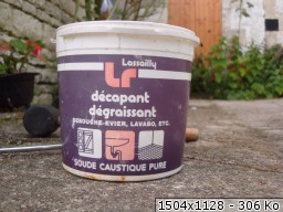 Maintenant il faut mettre la soude dans l’eau. 1 Kg pour 20 litres environ.
