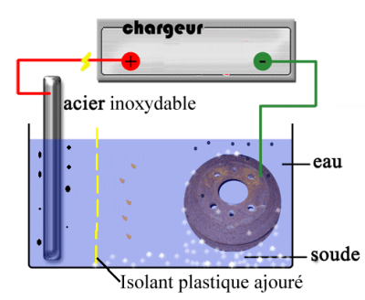 Ce procédé consiste à utiliser l’Electricité pour décomposer la rouille