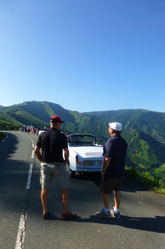 C’est parti pour la route des cols ! Au menu en ce début de matinée 4 cols jusqu’à Larrau dont le col de Bagargui, et sa redoutable descente qui a vu pas mal d’équipages en difficultés avec des freins trop chauds... donc plus de freins !!!