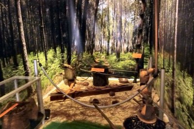 La maison du patrimoine, et plus particulièrement une présentation des activités liées à la résine des pins.