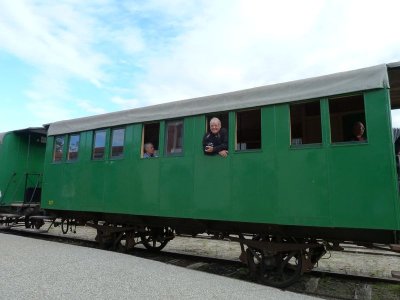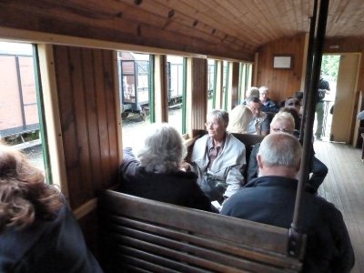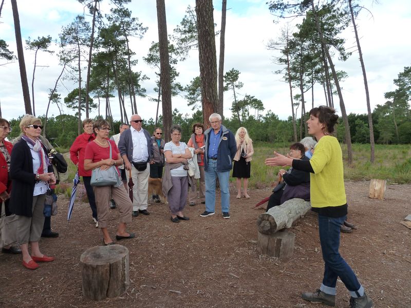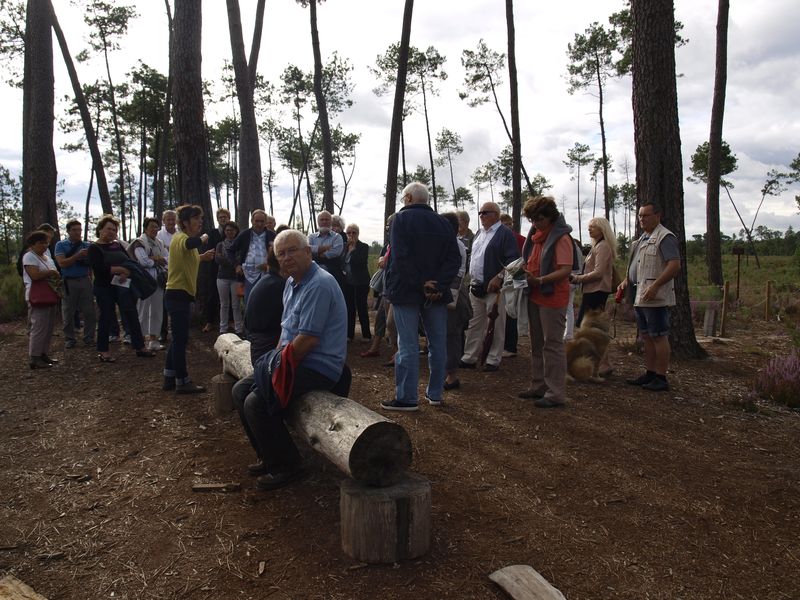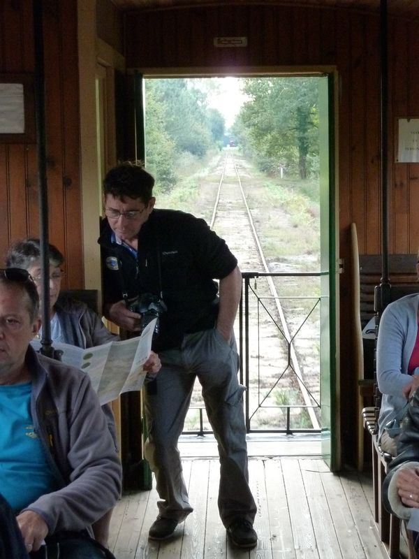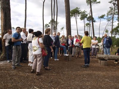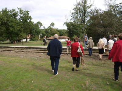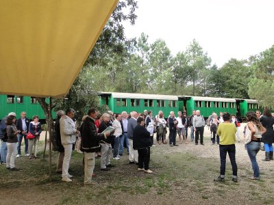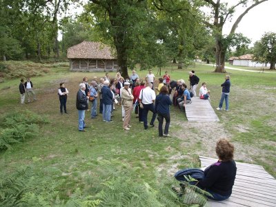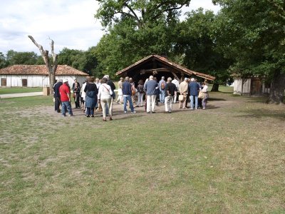 Nous laissons les voitures devant la petite gare du musée où un train "dans son jus" nous transporte vers l’airial de Marquèze.e Notre guide nous attend pour commencer la visite.