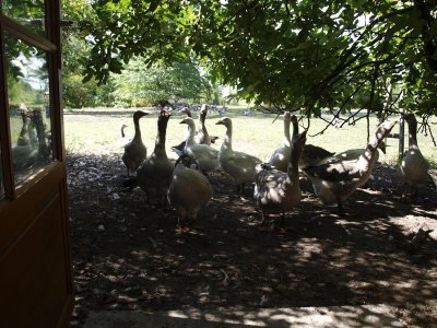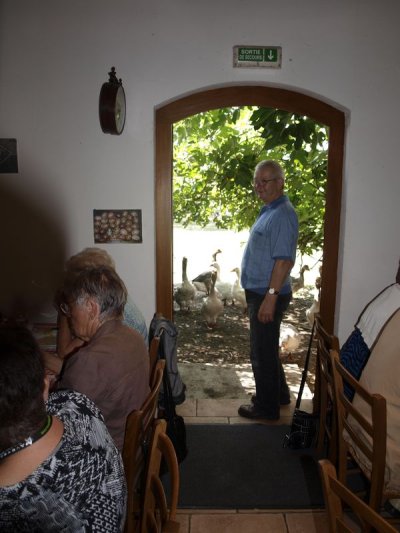 Nous nous arrêtons à la petite ferme impériale, ferme auberge, où un plantureux repas landais nous attend. Le canard est à l’honneur sous toutes ses formes.