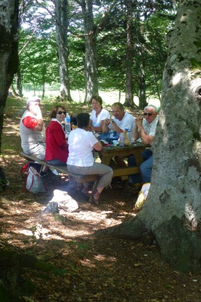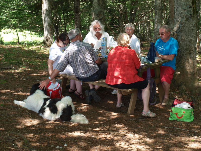 PIQUE-NIQUE Pique-nique au col de Chioula, à l’ombre d’une hêtraie, en compagnie du chien de l’auberge voisine où nous prenons un petit café avant de repartir.