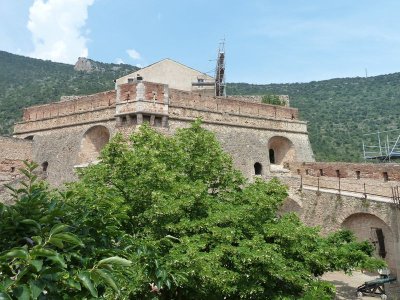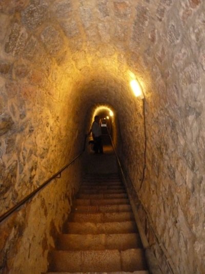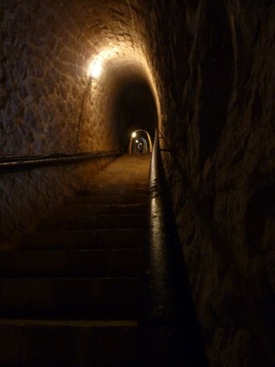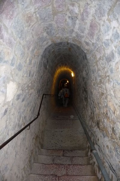 Visite du fort, rafraîchissement avant de redescendre par un escalier creusé dans la montagne.