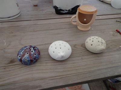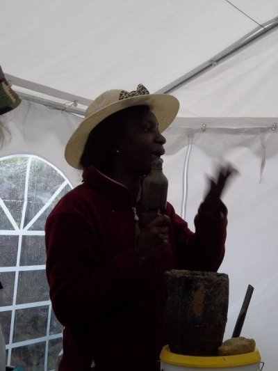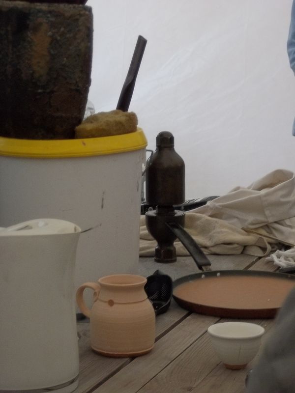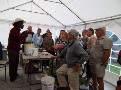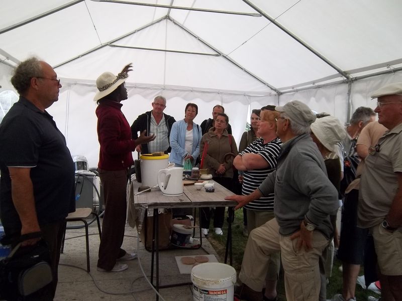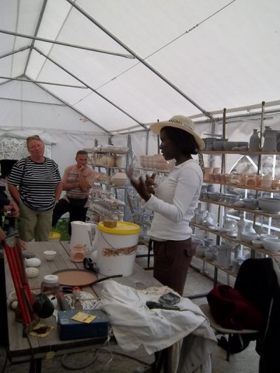 La démonstration est brutalement interrompue par un orage et nous nous réfugions sous une tente où des potiers fabriquent les objets cuits au solaire.