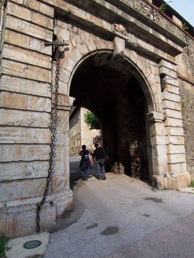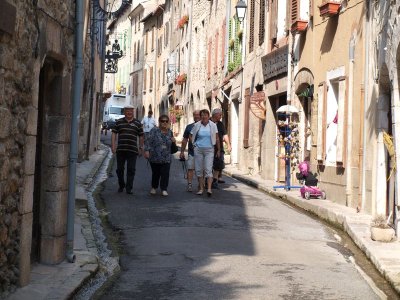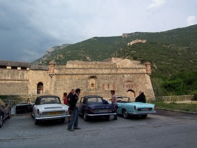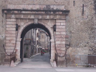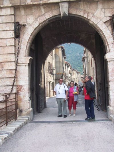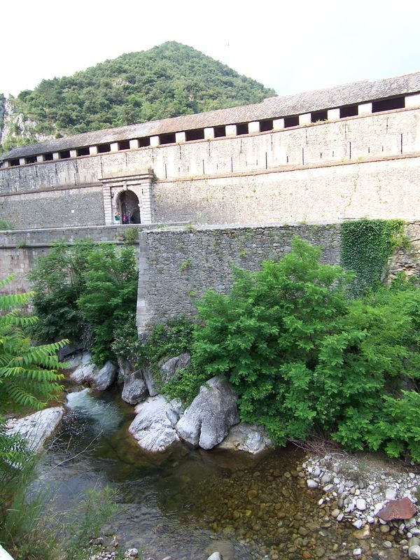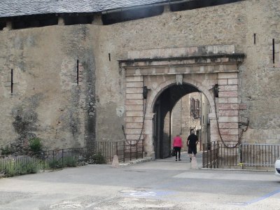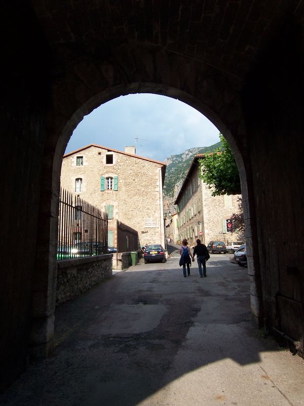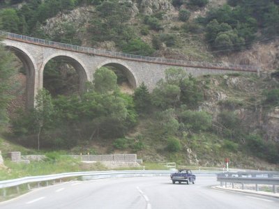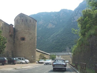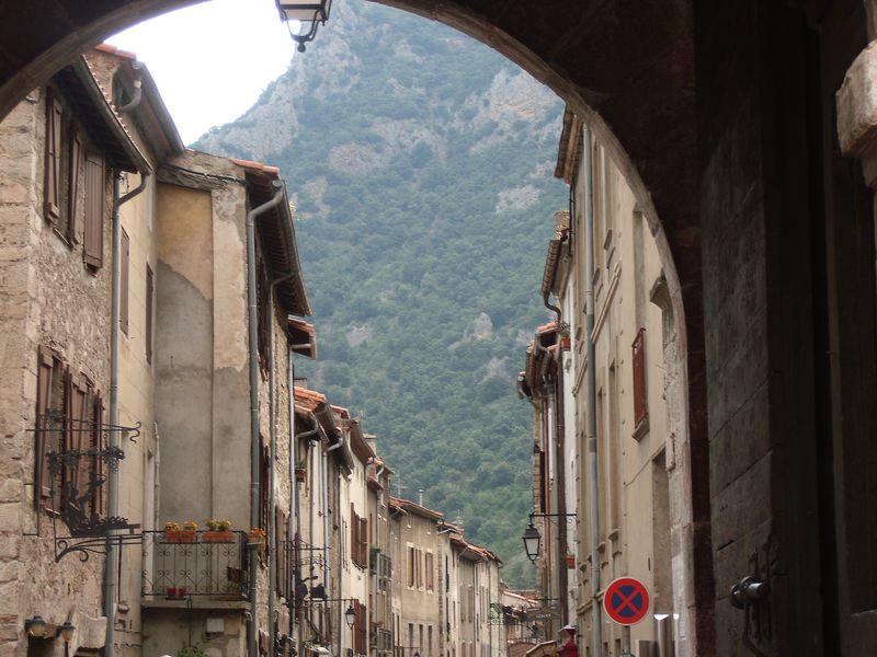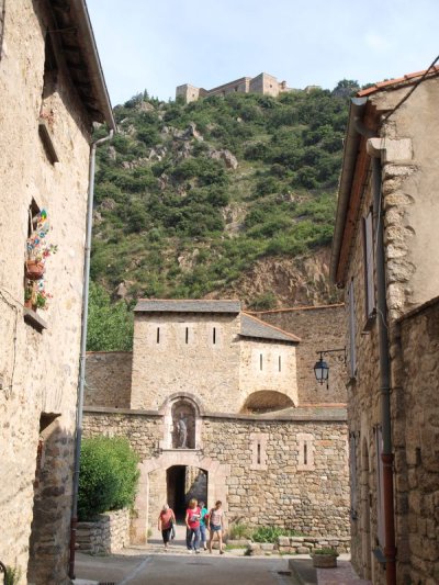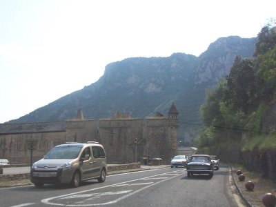 Pour arriver dans la cité fortifiée, nous roulons en suivant la voie ferrée du petit train jaune.