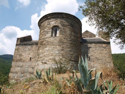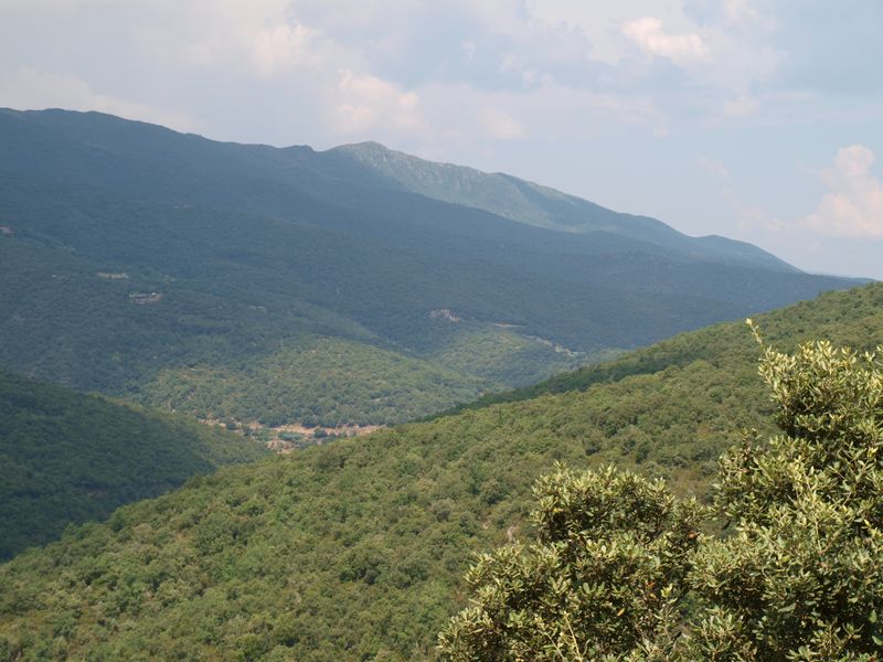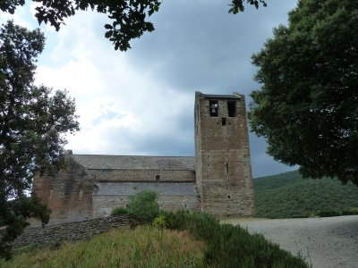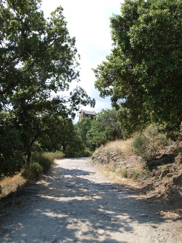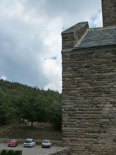 Nous quittons la grande route vers le Prieuré de Sarrabone. Chaleur intense, de gros cumulus bourgeonnent sur le relief...