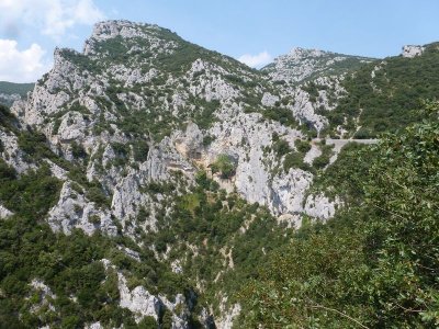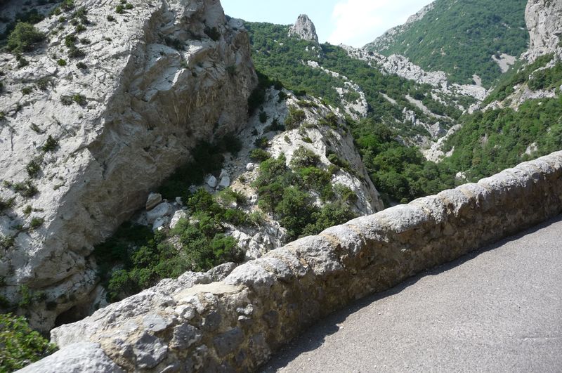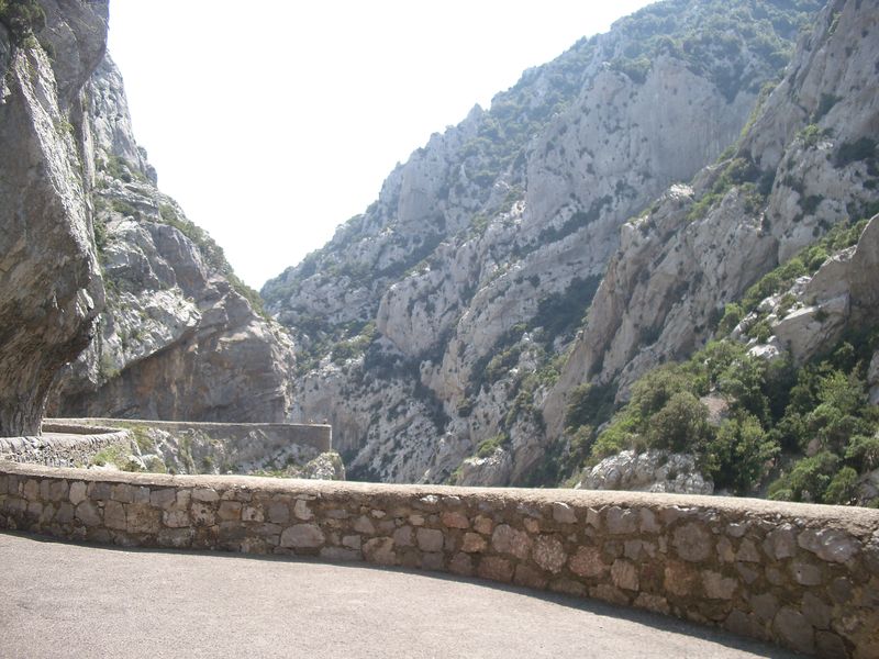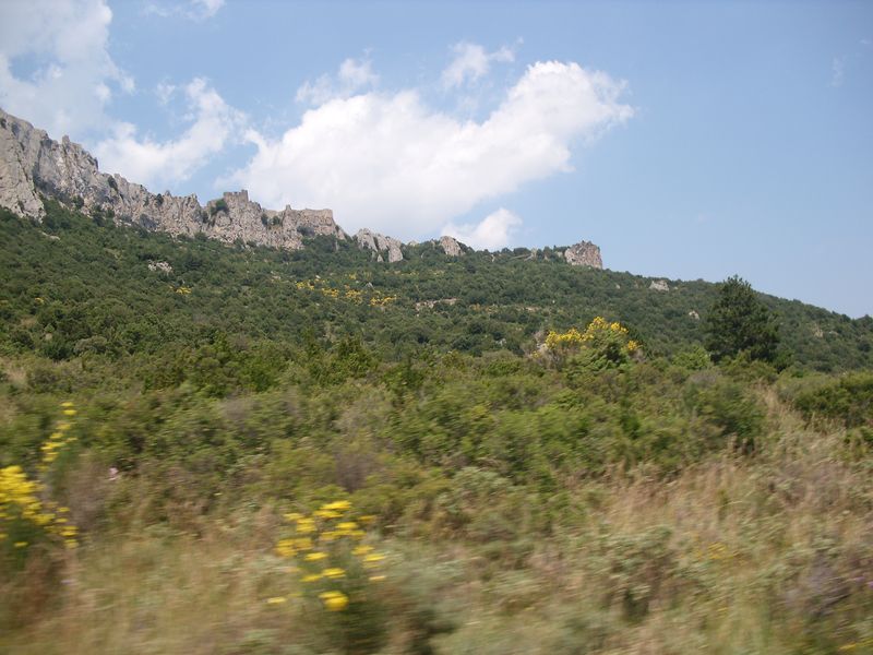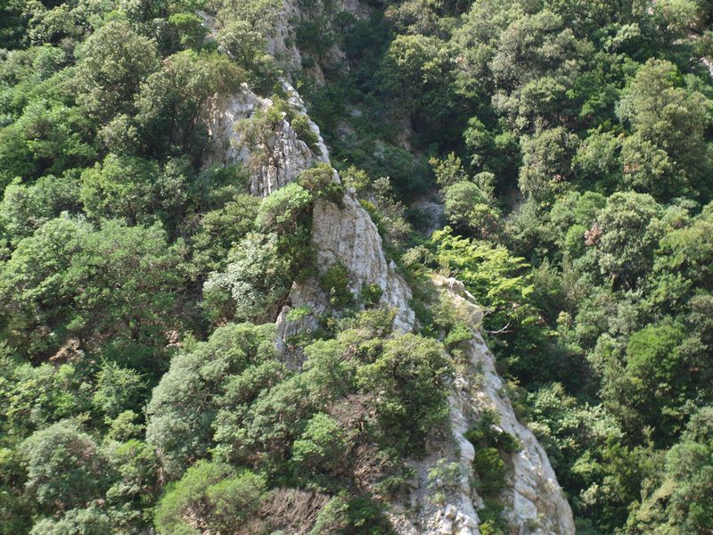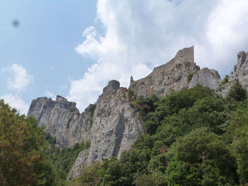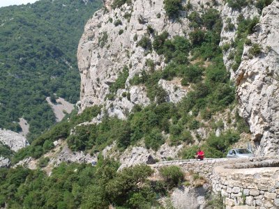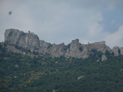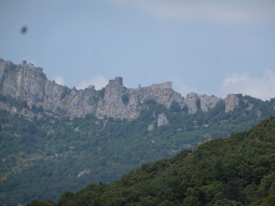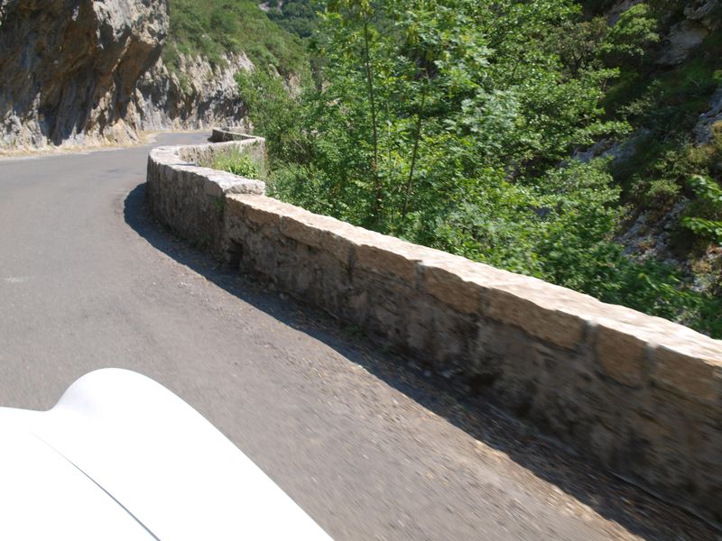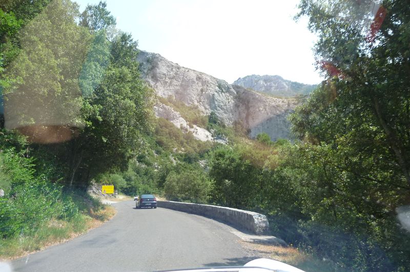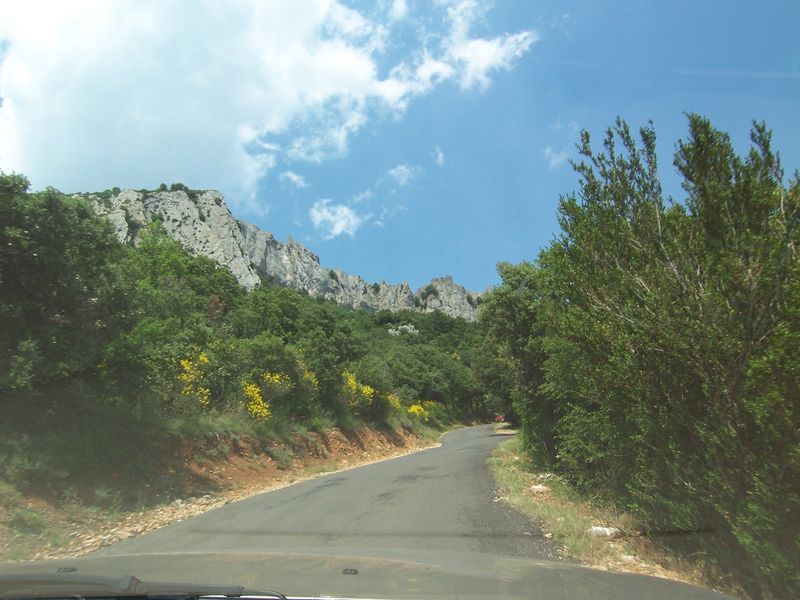 Repas pris, la route continue ; passage au pied du château de Peyrepertuse que personne n’escalade. Puis c’est la descente par les gorges de Galamus.