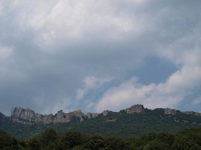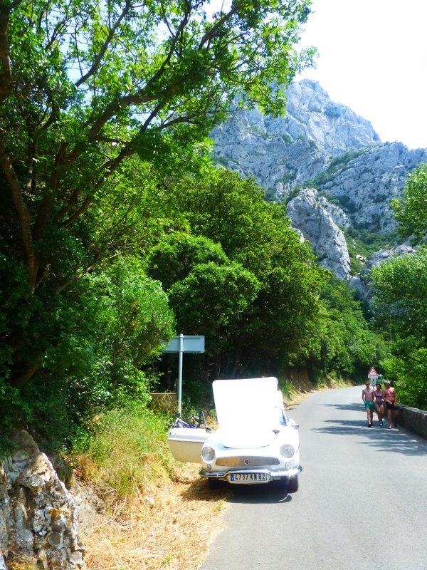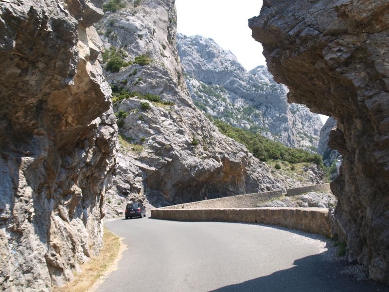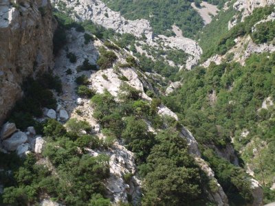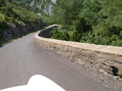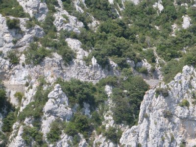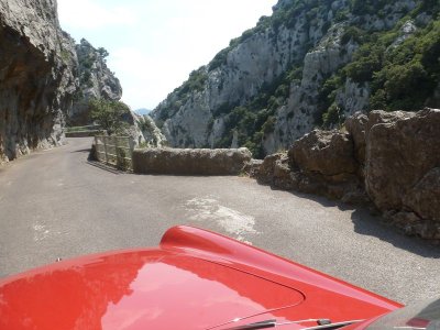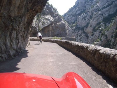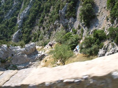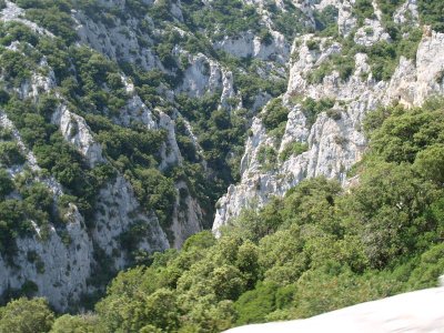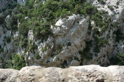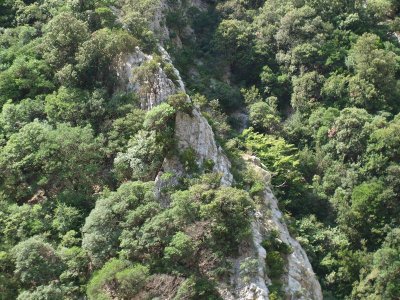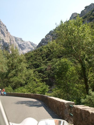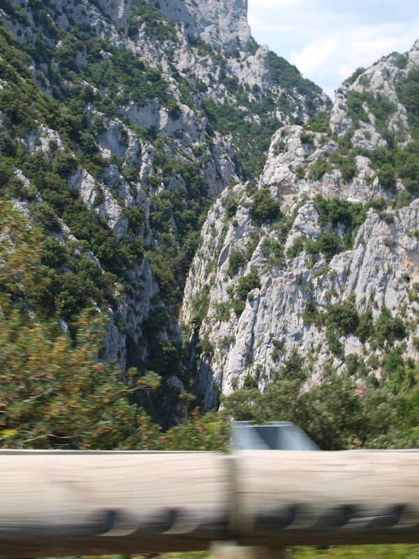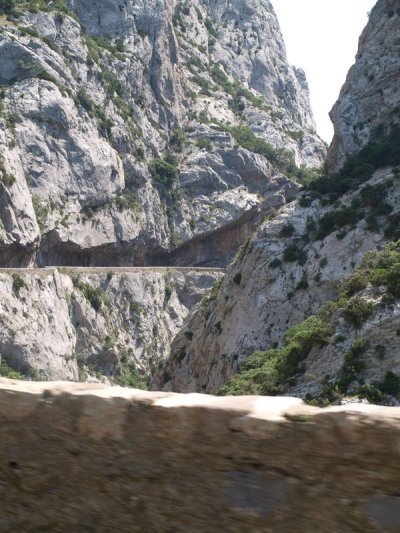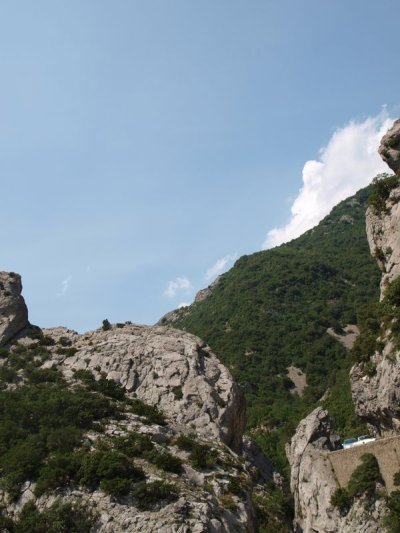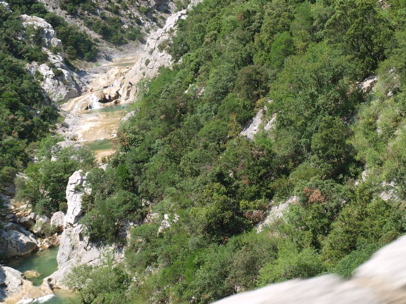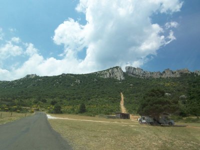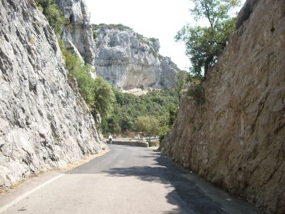 Repas pris, la route continue ; passage au pied du château de Peyrepertuse que personne n’escalade. Puis c’est la descente par les gorges de Galamus.