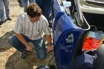 Retrouvailles célébrées, nouveaux venus présentés, c’est la distribution des petites pochettes devenues traditionnelles, des badges, des carnets de route et des plaques de rallye.