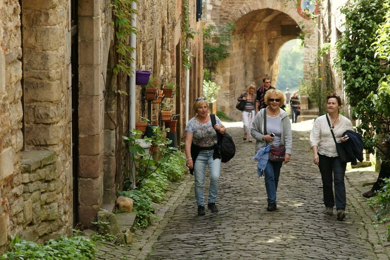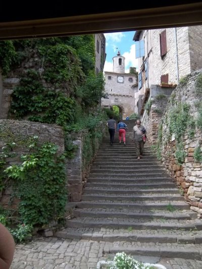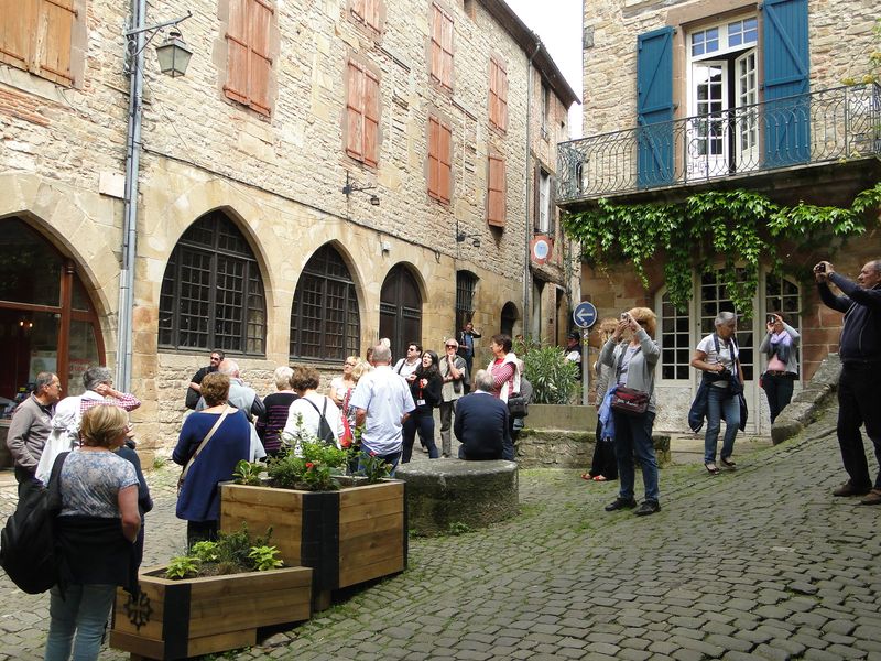 Nous déambulons dans les rue du village haut en écoutant les explications et commentaires, toujours passionnants, de la guide qui nous permet de ne rien rater de notre courte visite...Il faut en effet repartir vers notre destination du jour : Lacaune les Bains.