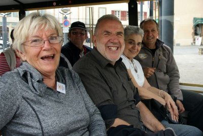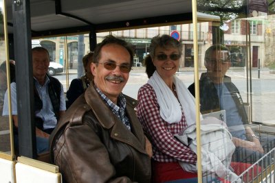Une guide nous attend au pied du petit train qui va nous monter en haut du village.