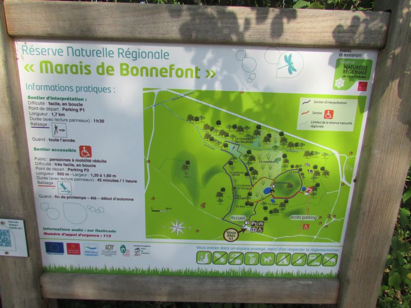 Un circuit pédestre est proposé au marais de Bonnefont... Il fait déjà trop chaud et le timing de la journée va être serré...Petite halte à l’ombre et c’est reparti...