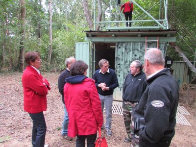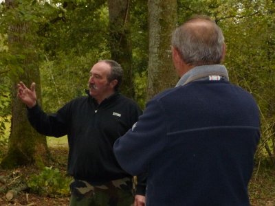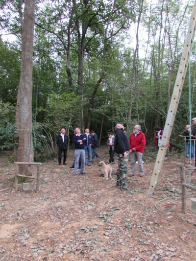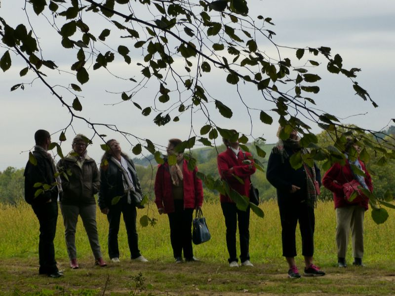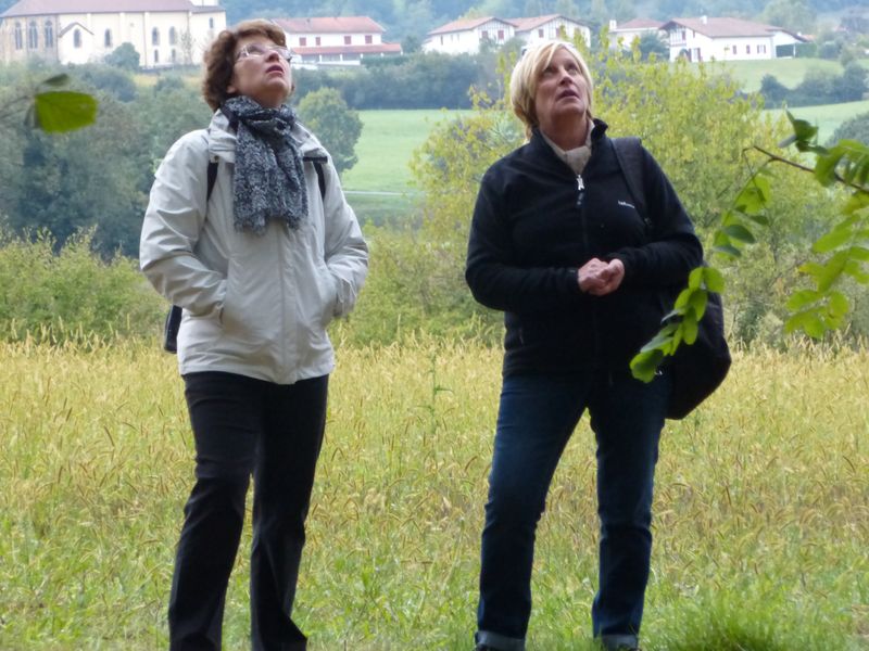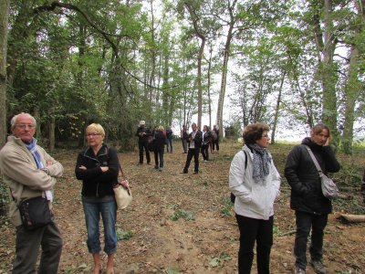 A 8 h 45 précises, nous prenons la route sous un ciel gris, pour aller visiter une "Palombière". Nous nous garons sur le bord de la route, près d’un petit bois.