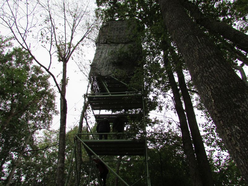 Nous apprenons ainsi que les palombes sont une variété de pigeons, mais migrateurs ceux là. Les chasseurs les guettent au passage à l’affut dans leur palombière. C’est une tour d’une vingtaine de mètres de haut soigneusement camouflée.