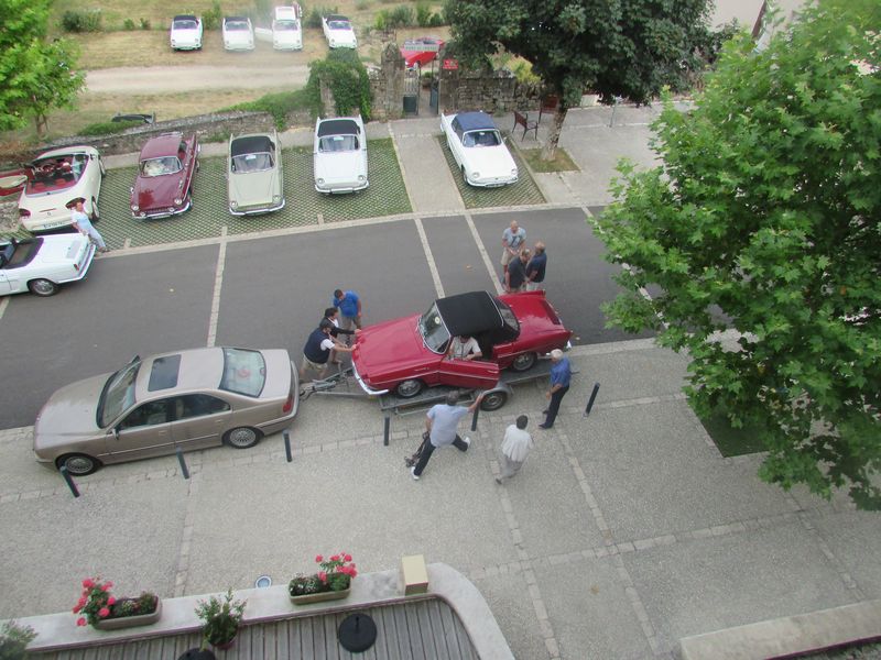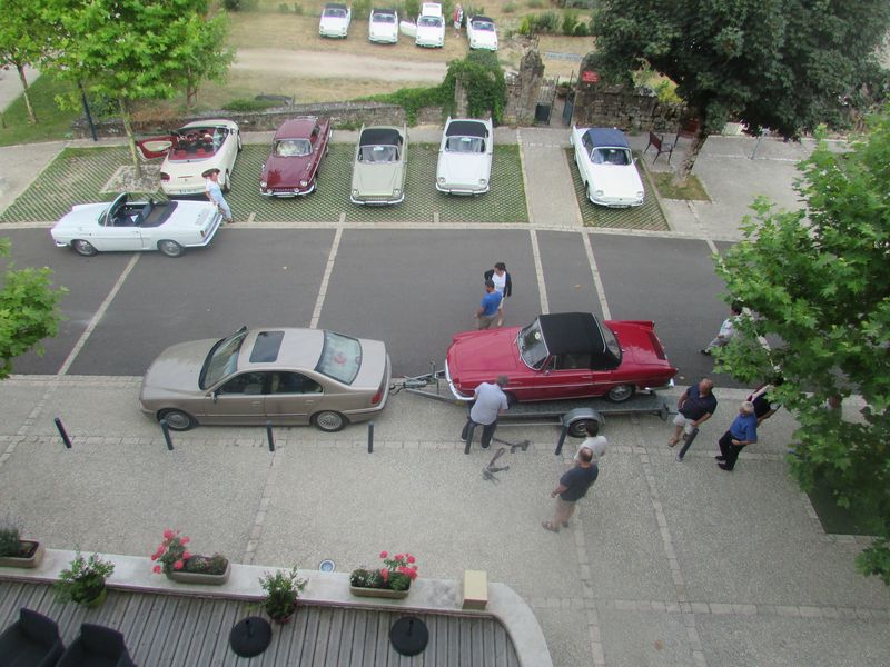 Ce matin grand déménagement, nous quittons notre premier hôtel. La caravelle de nos amis basques, arrivée en panne, est montée sur le plateau d’Alain qui va leur confier sa caravelle pour la journée.