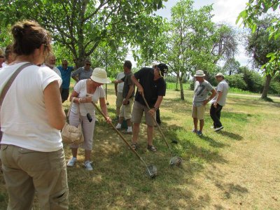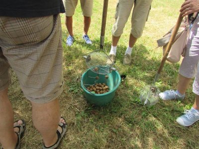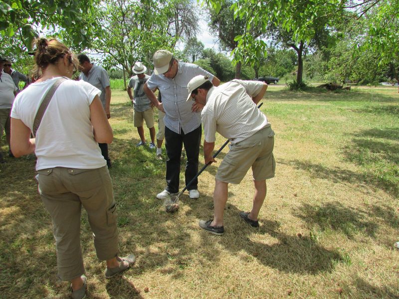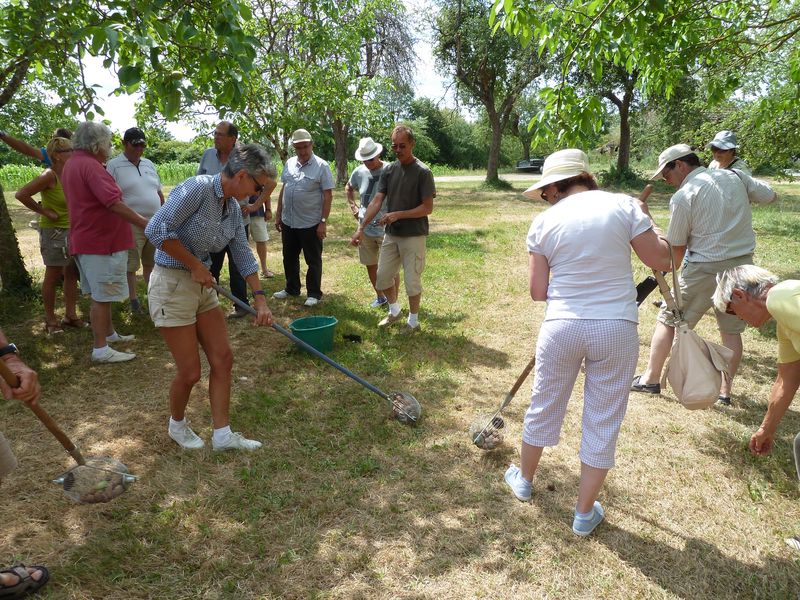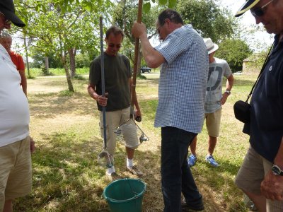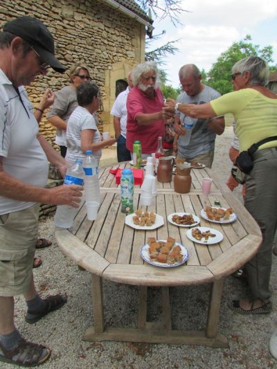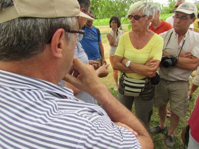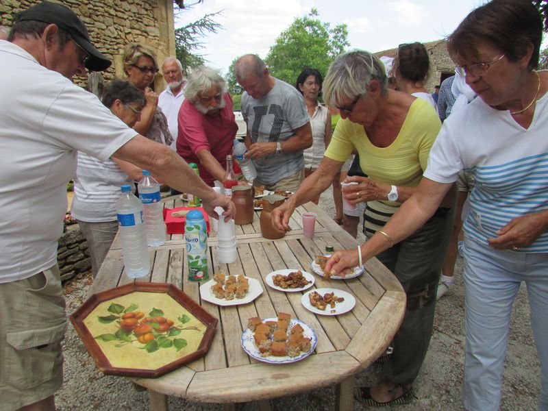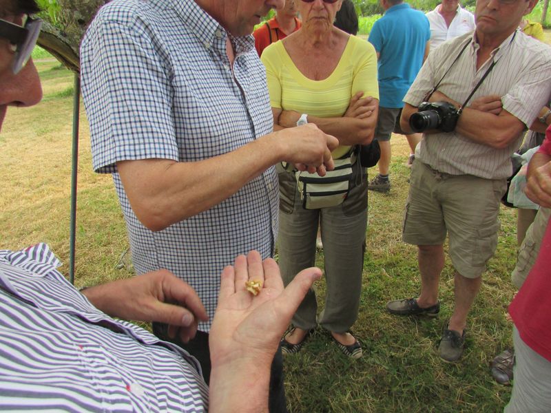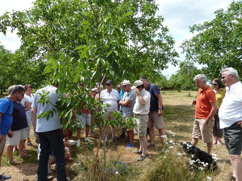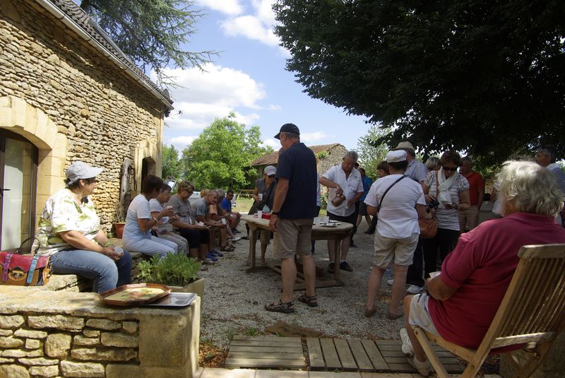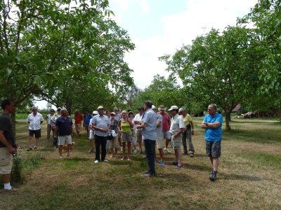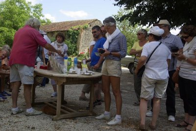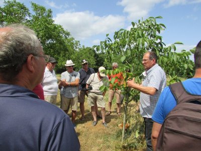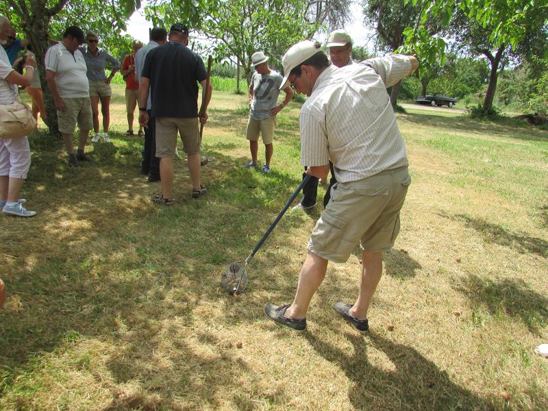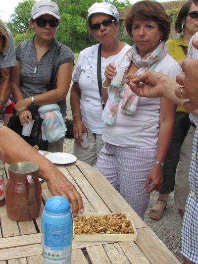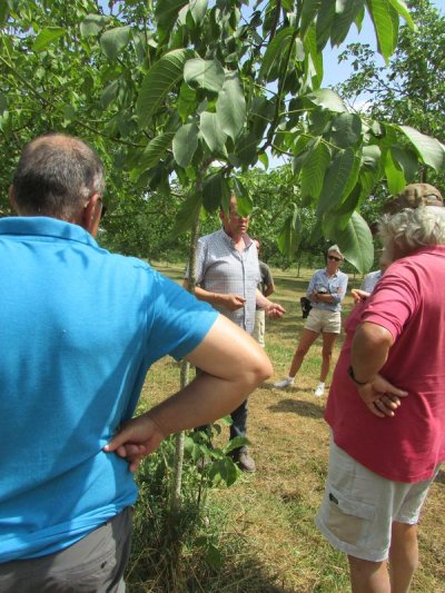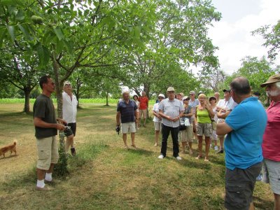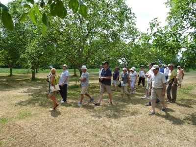 Nouveau regroupement à la ferme du Pech, les voitures sont garées sous les arbres, Françoise & Gérard Tremouille nous font une visite guidée de la plantation de noyers, démonstration de ramassage, puis retour à la ferme pour une dégustation des produits dérivés...