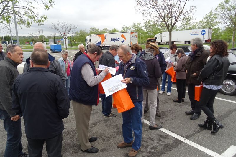 Les petites pochettes contenant plaque de rallye, carnet de route et dépliants touristiques sont données aux équipages présents.