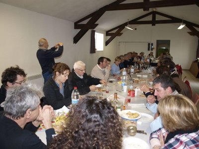 Compte tenu d’une météo assez incertaine et une température basse pour la saison, nous décidons de nous replier dans la salle prêtée par la Mairie de Revel.