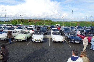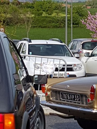 Après une route sous l’orage et une pluie battante, nous arrivons sur un parking réservé au "FOLCAR" : oup’s petit problème de communication...