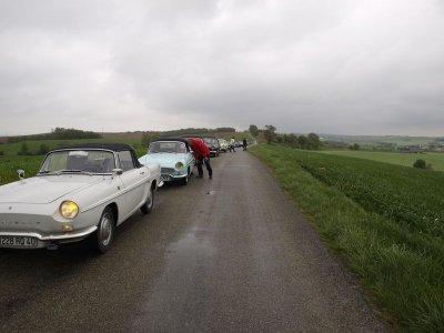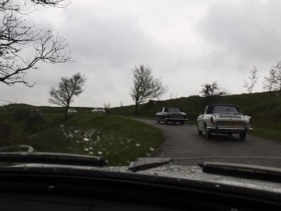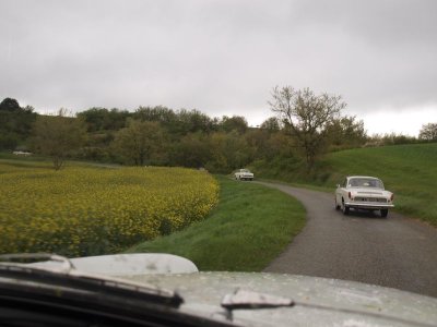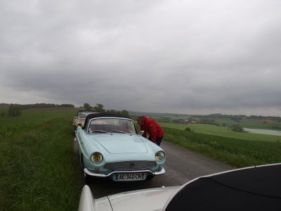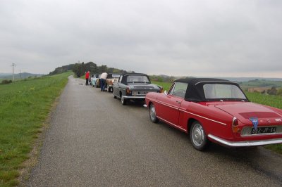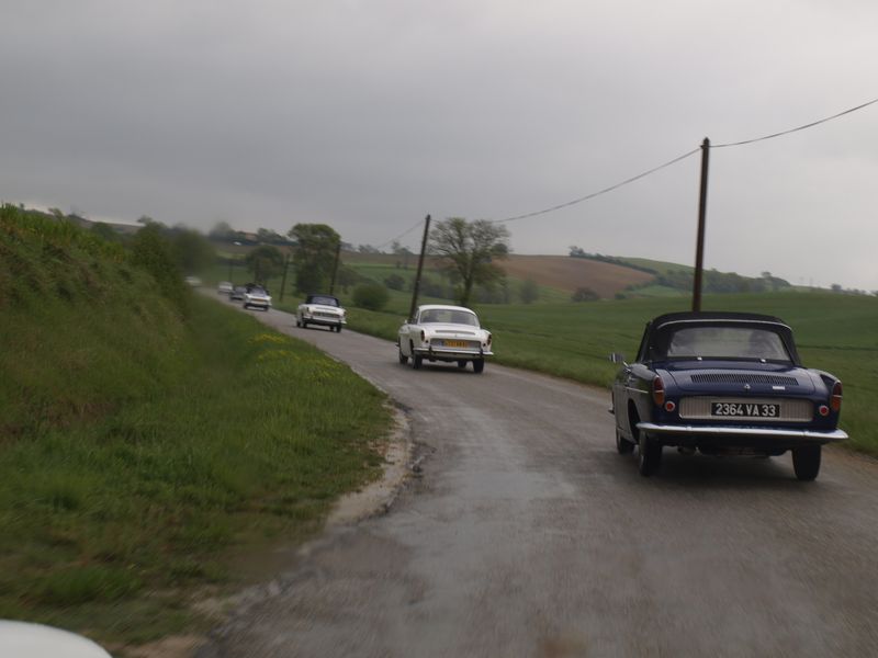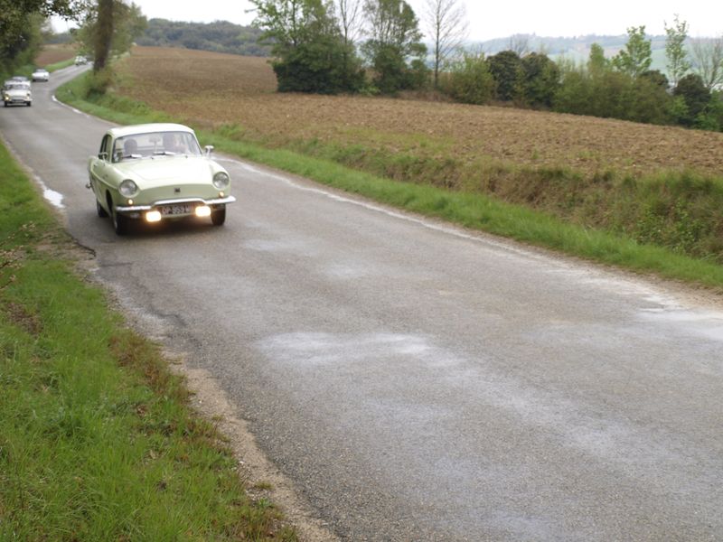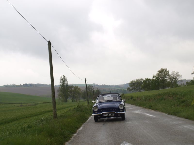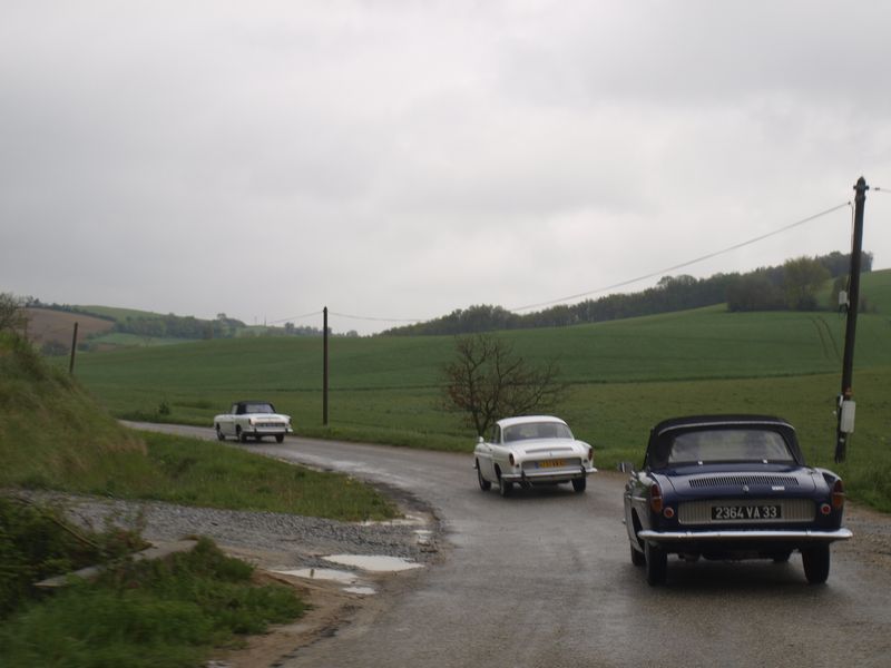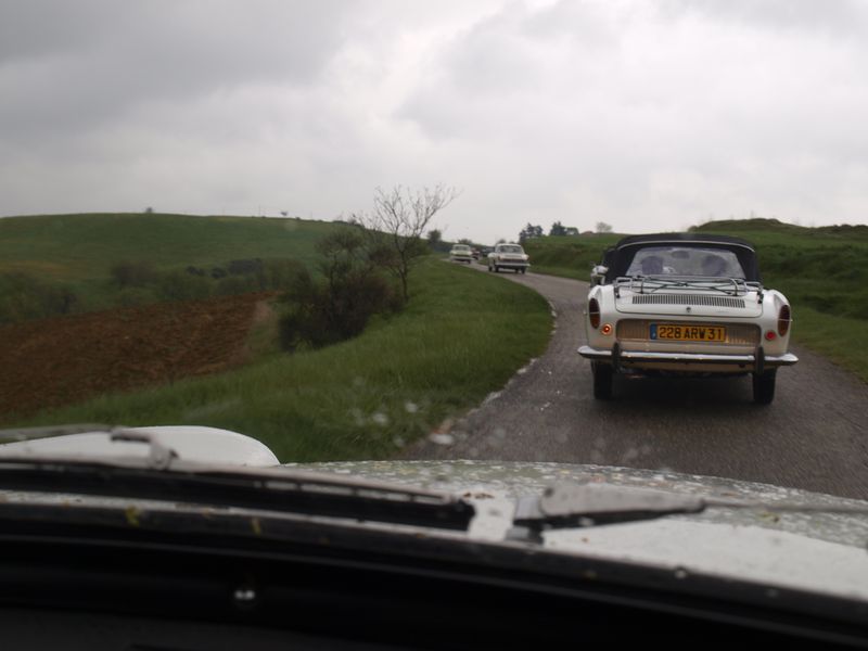 Après un copieux petit déjeuner, nous quittons l’hôtel pour une balade sur les routes lauragaises. Le soleil n’est pas au rendez-vous et nous testons l’étanchéité de nos capotes et hard-top...
