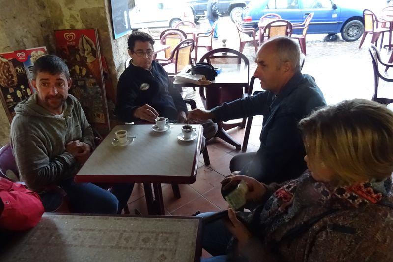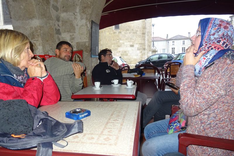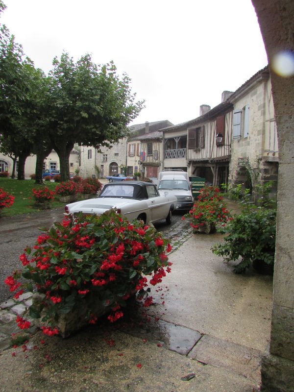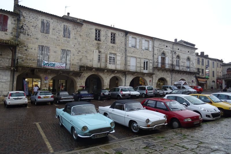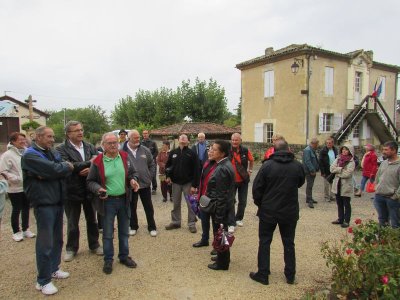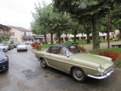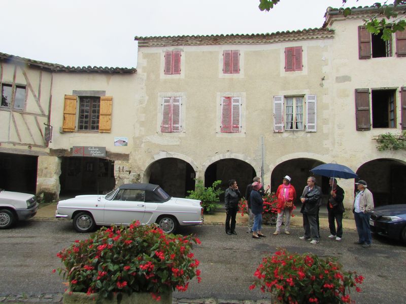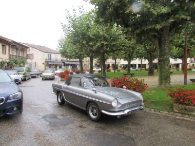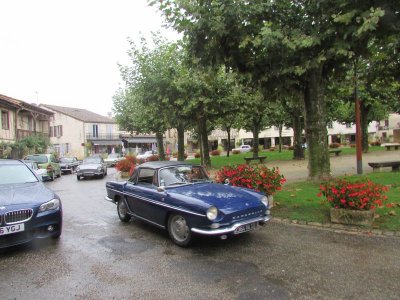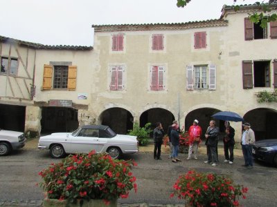 Distribution de la documentation et départ des premiers équipages sur les routes d’Albret vers Mézin pause café pour certains ou achats pique-nique pour d’autres.