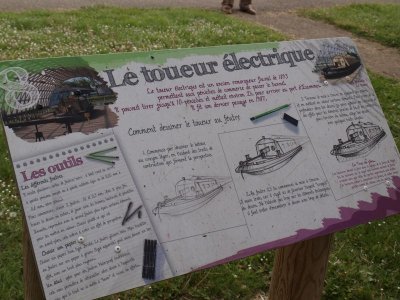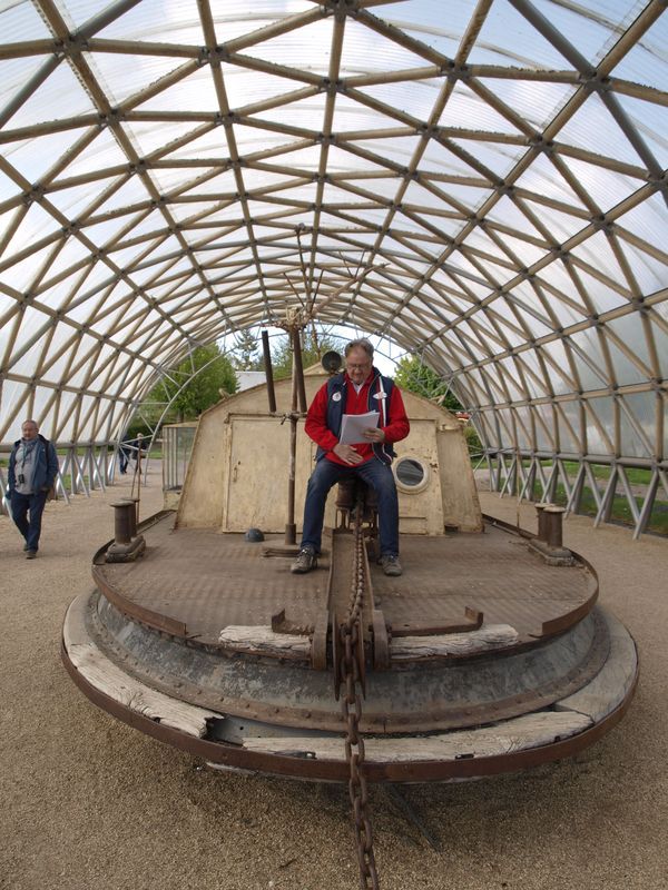 Puis nous découvrons un bateau étrange, le toueur, mu par un moteur électrique qui permettait de tirer les bateaux sous le tunnel...