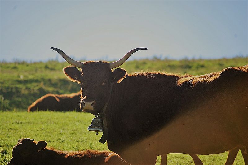 Un magnifique troupeau de Salers donne lieu à un petit arrêt musical.