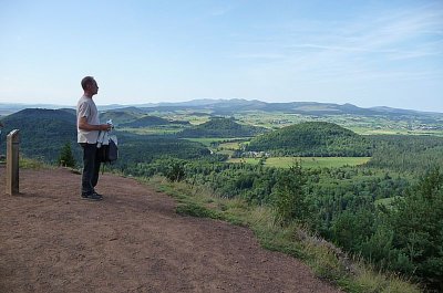 Nous reprenons la route qui serpente sur une ancienne coulée de lave. Nous passons quelques puys (anciens volcans) dont le Puy de la Vache, réputé facile, mais pas tant que ça : 568 marches...Thierry et Jeannine en gardent un souvenir très sportif !