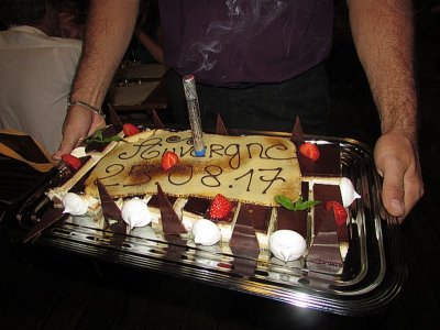 Tout le monde se retrouve en fin d’après-midi pour le pot de l’amitié et le dernier repas de la sortie. L’hôtel nous fait la surprise d’un repas typique et d’un magnifique gâteau de fin de sortie...