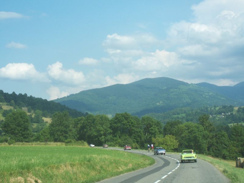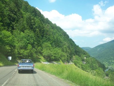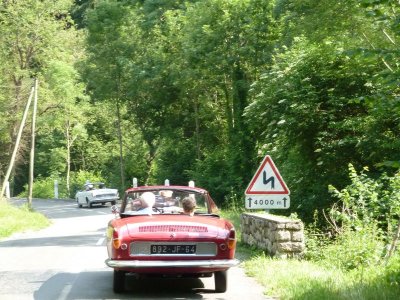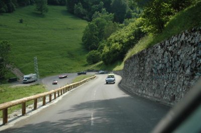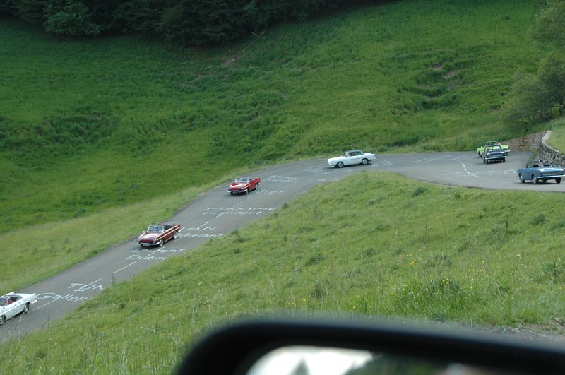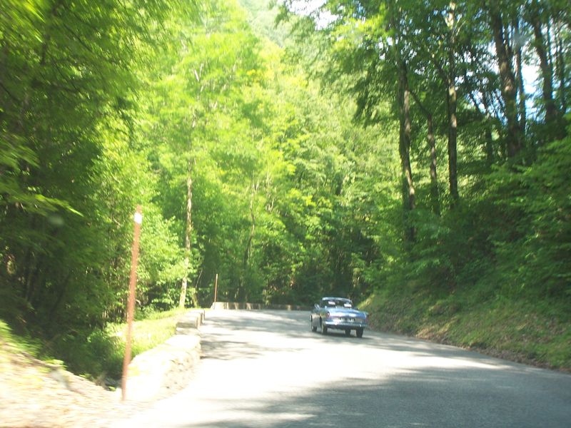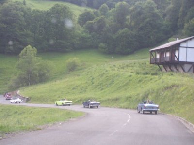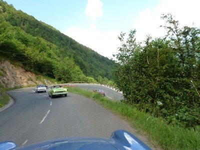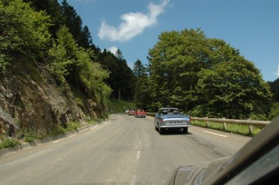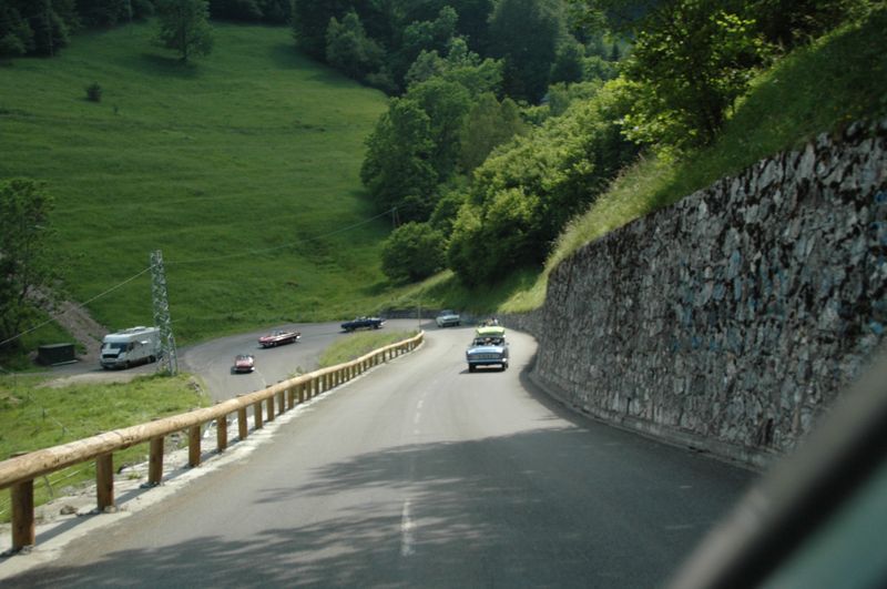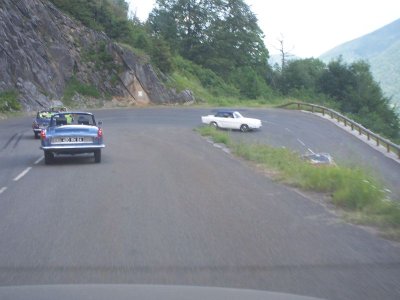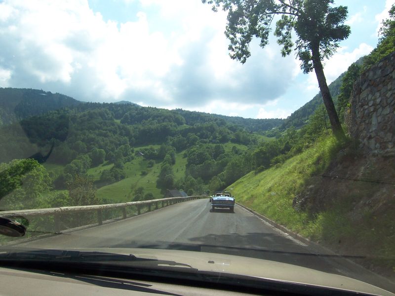 Vers St Girons Bien que très étalés sur le trajet, toutes les voitures se retrouvent sur la route vers St Girons, étape du jour.