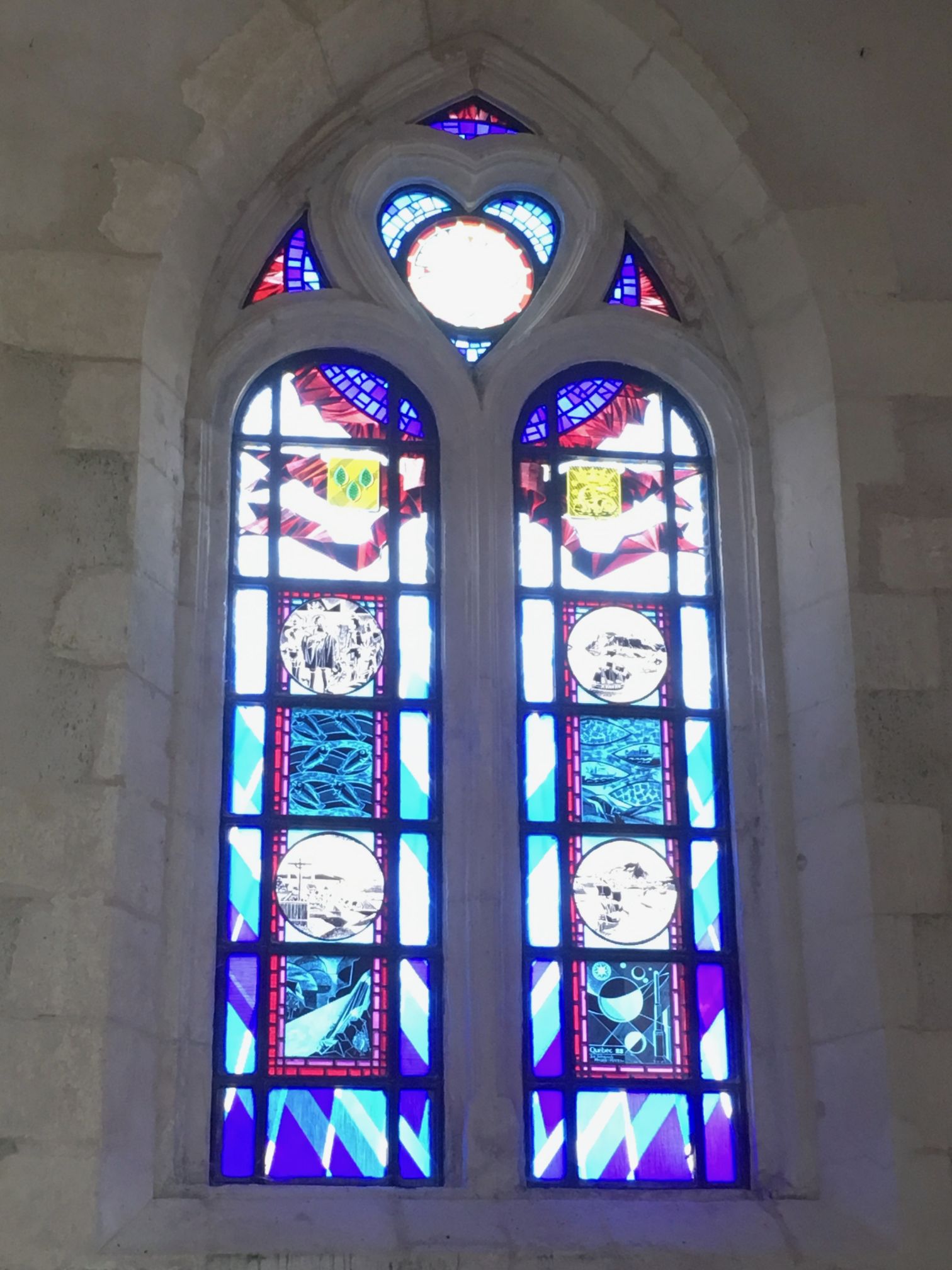 et enfin l’église, et ses superbes vitraux offerts par les Québecois en hommage à Samuel de Champlain originaire de Brouage et fondateur de la ville de Quebec.