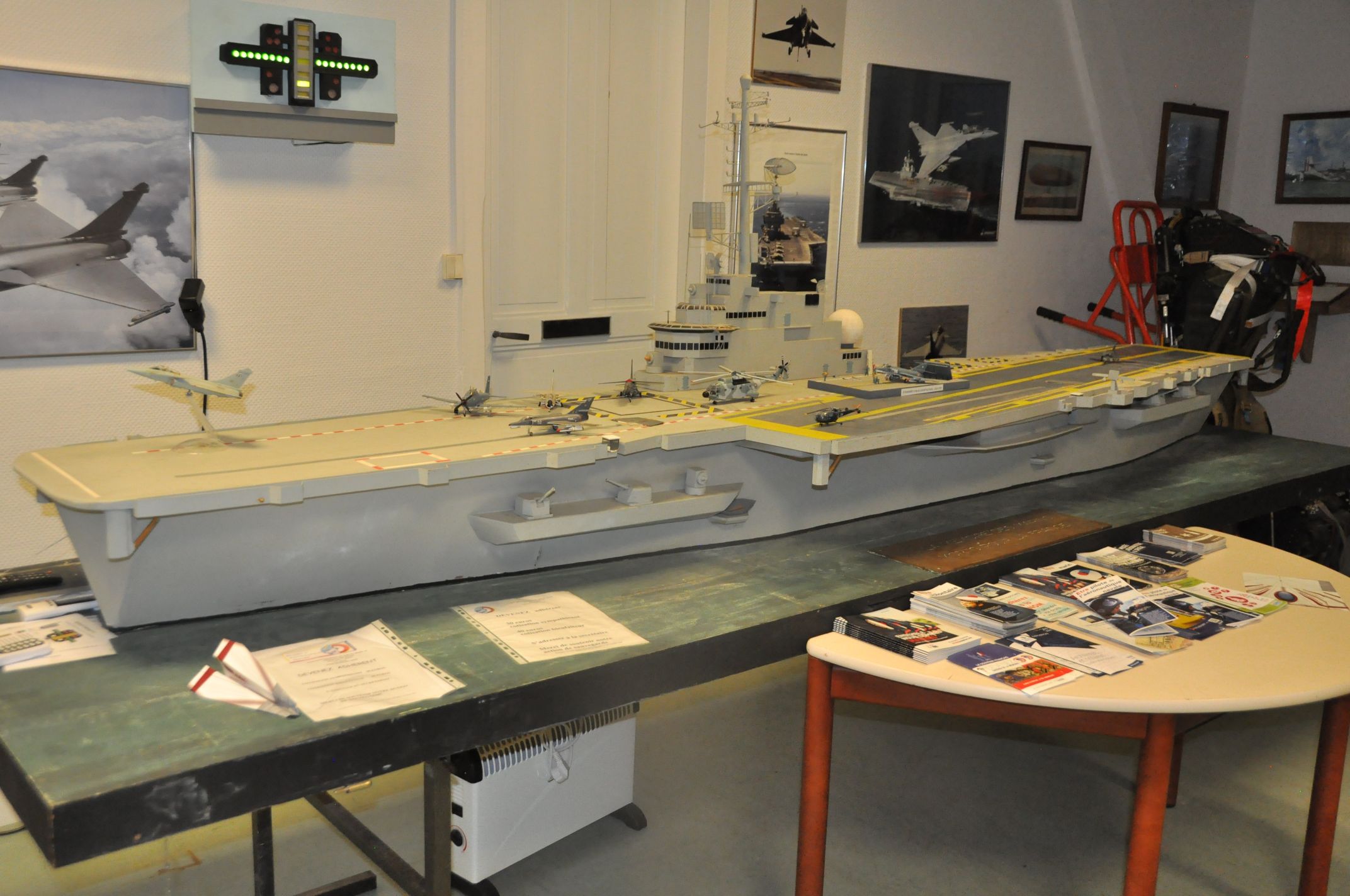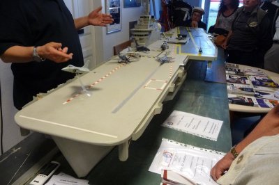 Face à une maquette de porte avion notre guide nous explique l’Histoire qui depuis 1910 fit allier le bateau à l’avion comme la carpe au lapin