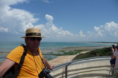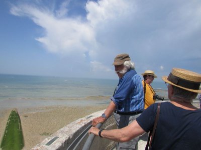 L’un attaque l’escalade de l’ancien phare tandis que l’autre examine les pièces exposées dans le musée sous la conduite d’un guide.